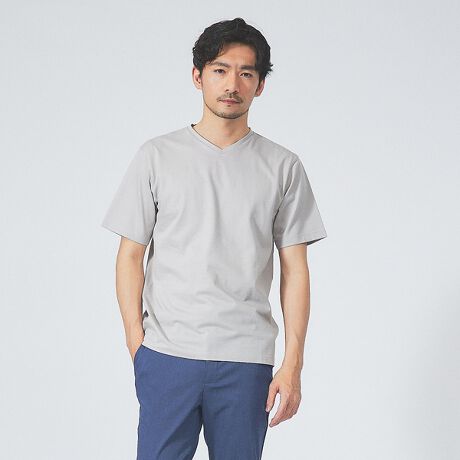 【マイクロ鹿の子】シルケット Vネック Tシャツ