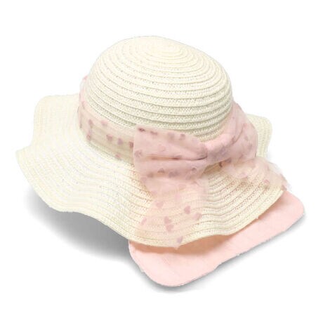 手洗いOK、吸水速乾、小さくたためて持ち運びも便利!昨年も人気だったポリブレード素材、洗えるたためるシリーズの帽子、ハット。春夏のお出かけにオススメなアイテム。女の子らしい透かし編にチュールのリボン付き。チュールがハート柄なのも可愛い!日よけのたれ付きなので、首元の日焼け対策も出来ます。【アイテム】 雑貨 カジュアル お洒落 オシャレ かわいい 可愛い 普段着 デイリーウェア お出かけ 子ども こども 女児 女の子 ガールズ キッズ ベビーサイズ トドラーサイズ 幼稚園 保育園 小学校 通園 通学 小学生 遠足 旅行 2023年夏物新作 丸高衣料 小物 ブラウン 茶色 ベージュ キッズフォーレ ピンク ラベンダー パープル 薄紫色