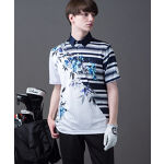 ボーダー柄とフラワー柄をミックスしたデザイン性の高いポロシャツです。