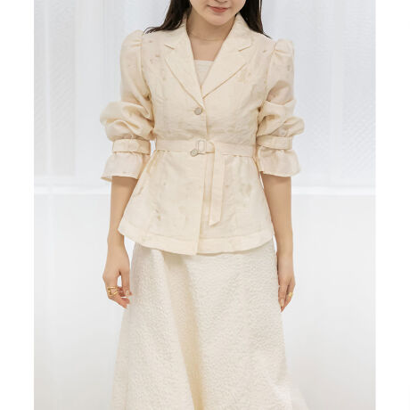 繊細なジャガード生地を使用した、女性らしいジャケット