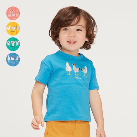 3匹並んでいる刺繍の動物たちが愛らしくておすすめ!アプリコットはキリン、イエローはゾウ、グリーンはコアラ、ターコイズブルーはカモメでカラーによってモチーフが異なります。男の子も女の子もユニセックスで着られる半袖Tシャツ。(ベビーサイズのみ肩ボタン仕様になります。)【アイテム】トップス カジュアル お洒落 オシャレ かっこいい かわいい 可愛い 普段着 デイリーウェア お出かけ着 お外着 お外遊び着 子ども服 こども服 男児 男の子 ボーイズ キッズ ベビーサイズ トドラーサイズ 幼稚園 保育園 小学校 通園 通学 小学生 2023年夏物新作 丸高衣料 半袖 アニマル きりん ぞう かもめ アプリコット ピンク 赤色 イエロー 黄色 グリーン 緑色 ターコイズブルー 青色 女児 女の子 ガールズ 男女兼用 ムージョンジョン