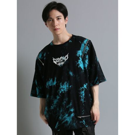 semantic design×PSYCHONATIONのコラボレーションアイテム。5分袖のクルーネックTシャツです。存在感のあるアイコンプリントとZIPファスナーでダークな世界観を表現しています。両肩と左脇裾のZIPファスナーは、インナーをチラ見せできるように本開き仕様となっています。ブラックデニムやチェック柄パンツと合わせて、病み系ファッションでコーディネートするのがおすすめです。