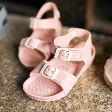 定番のEVAサンダル!女の子も男の子も使いやすいベージュ/チャコール/サックス、女の子に人気なラベンダー/ピンクの全5色展開。毎年人気の商品なのでお見逃しのないように!