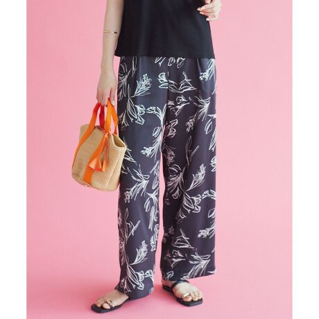 フラワープリントと落ち感のある素材で、きれいめカジュアルが叶うワイドパンツ