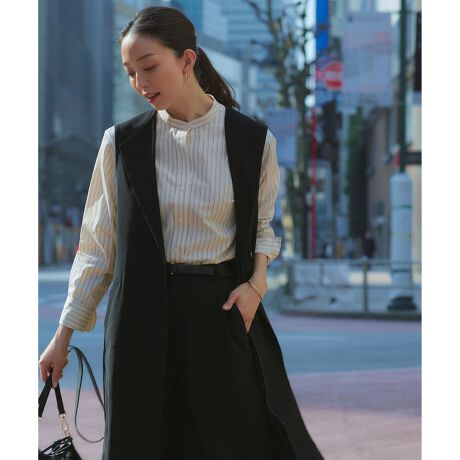 きちんと感とリラックス感を兼ね備えた、レイヤードが楽しめるロングジレ