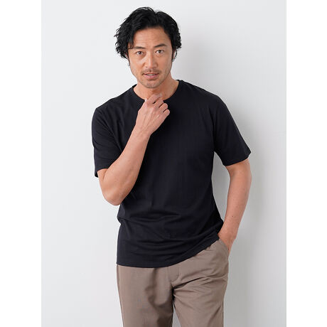 20番コーマ糸という長繊維のキレイな糸を使用。液体アンモニア加工により、斜行しにくい安定した品質と、柔らかくふくらみのある特徴を持った素材です。ネックのステッチ、裾ステッチや衿テープの巾、少しだけシェイプしたウエスト、衿のあき具合など、細部にこだわった仕様で仕上げています。