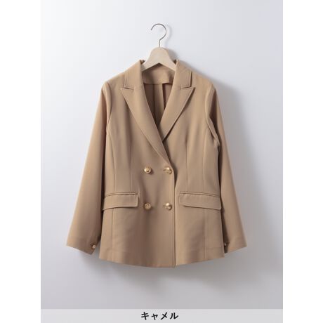 オフィスカジュアルをお洒落にアップデートする金ボタンダブルジャケット