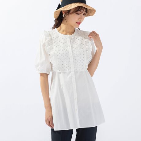 コットン素材のアイレット刺繍が夏らしいブラウス。