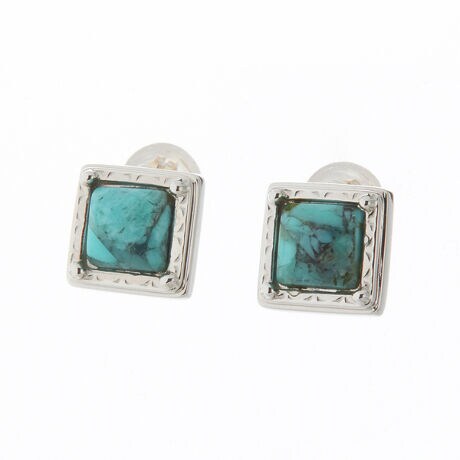 ニュアンスのあるコッパーターコイズのボリューミーなデザインのピアス。石の周りに繊細な模様を施し、引き締めた印象にしています。ジェンダーレスなデザインで、男性にもおすすめです。※コッパ―ターコイズは、天然のターコイズと銅を、細かく砕き圧縮して再生成した素材です。色目に個体差があります。※石は、のり留めですので水分にはご注意下さい。※超音波洗浄不可。