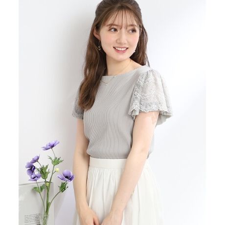 【着映え感抜群、華盛りアイテム】レースチュール袖テレコトップス