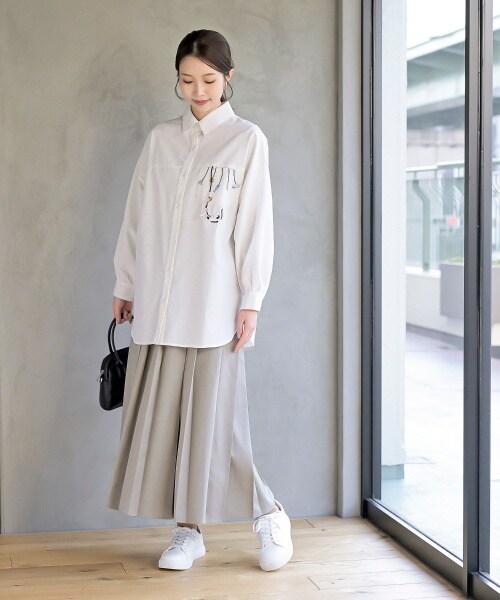 リーフ刺繍が大人ライクなコットンブラウス