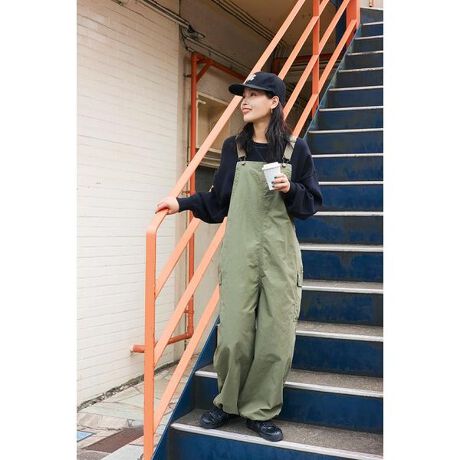 【Visual staff 溝田弥生プロデュースアイテム】古着の軍物ミリタリーサロペットをイメージし、ルーズなシルエットに落とし込んだアイテム。ルーズなことでインナー合わせが自由になり、ウエスト部分にはベルトを、裾には紐を付けることにより調節可能に。今までサイズ感で諦めていた方にも、チャレンジしやすい一着です。