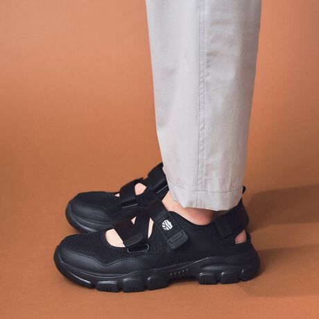 耐久性の高い合成皮革と通気性の良いダブルメッシュのコンビがキャンプシーンを快適にサポートします。