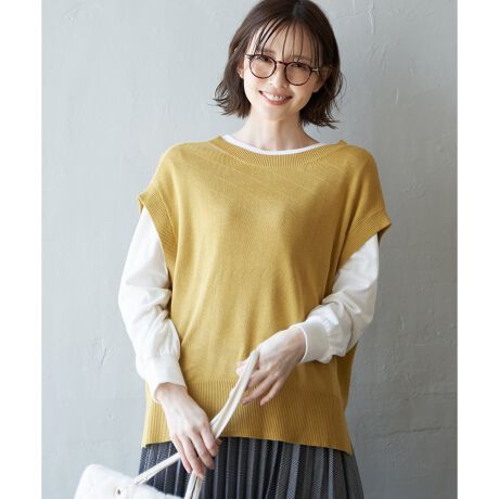 ベストは前後2WAYで着用でき、ボタン開きで、ジレとしても使える優秀ニットベスト。