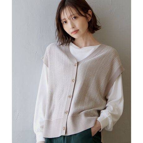 ベストは前後2WAYで着用でき、ボタン開きで、ジレとしても使える優秀ニットベスト。