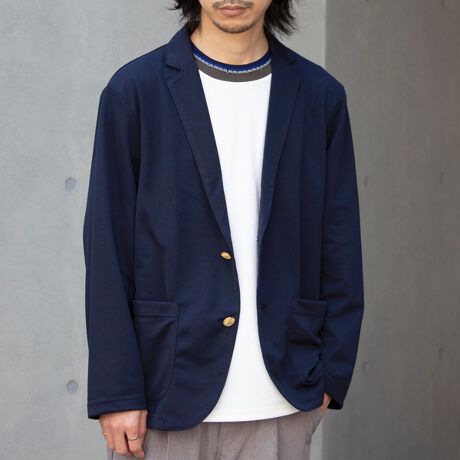 幅広いスタイリングに対応できるアメトラ王道2ボタン紺ブレをカーディガンに落とし込んだ1品
