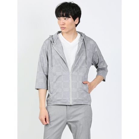 タカキュー 吸水速乾 チェック柄 7分袖パーカー