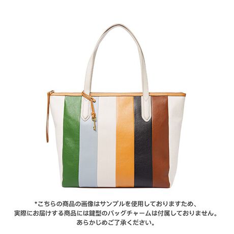 ファスナーポケット1つ、ペンホルダー2つ、クレジットカード入れ3枚分を備えたLiteHideレザーパッチワークのトートです。ハンドルが2本付いています。Fossilのレザー製品は、Leather Working Group(LWG)を通じて責任あるものづくりを支援しています。