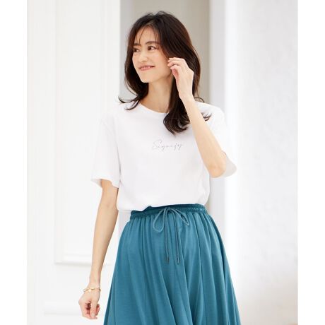 バックスタイルも楽しめるフォトプリントTシャツ。前身頃に優しい筆記体のロゴ、後ろ身頃にモノトーンのフォトプリントとメッセージを入れ、大人カジュアルなデザインに仕上げました。不安な世の中、穏やかに心地よい景色を眺めながら自分自身の軸を大切に、というメッセージが込められています。トレンドのジレやカーディガンのインナーとして着用した際も、繊細なロゴがさりげなくポイントに。一枚でもレイヤードアイテムとしても活躍すること間違いなしのアイテムです。
