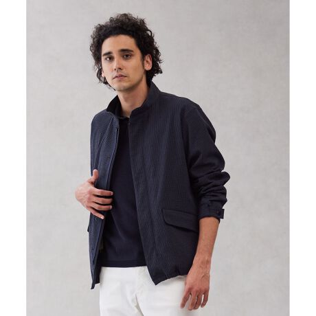 一枚仕立て軽量スタンドブルゾン。■機能性ハイパワーストレッチ。■素材ハイパワーストレッチ性のあるしなやかなライトウエイトサッカーです。■シルエットカットソーだけでなく、シャツの上からでも着用しやすいややゆったりしたボクシーな短丈シルエット。■仕様余計なデザインを廃し、シンプルモダンに仕立てています。■コーディネートTシャツなどのカットソーからハイゲージニット、あるいは裏毛パーカーまで、万能的に合わせやすい設計にしています。■デザイナーコメント大人が着やすいスタンドカラーデザインで、首周りのすっきりした落ち着き感には特にこだわりました。