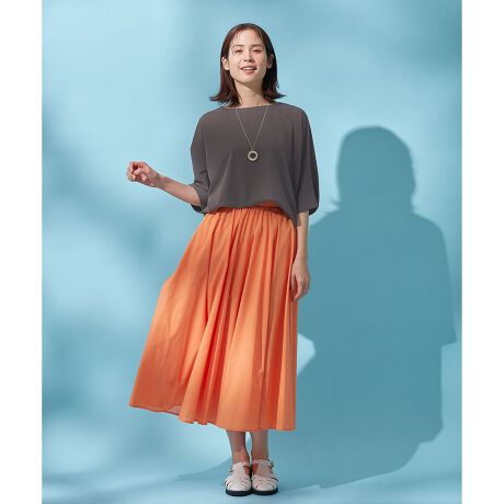 デザイン・柔らかく軽い着心地と、深みのある風合いが魅力的な大人気フレアスカートが今年も登場!・贅沢な布使いが大人っぽく、高見えアイテムとして重宝する・ウエストがゴム仕様になっていて、楽な着心地と気映えを両方叶えてくれる・今年はウエストの前部分を改良し、フラットにしたことで、トップスINにしてもスッキリ見せてくれるデザインに・裏地付きなので透ける心配なし・片側にポケット付で、お手持ちのスマートフォンなどを収納できる