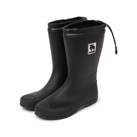 つなぎ目のない一体成型なので雨がしみこみにくく、履き口にフードがついているので雨や雪の侵入を防ぎます。