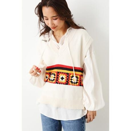 クロシェモチーフニットベスト