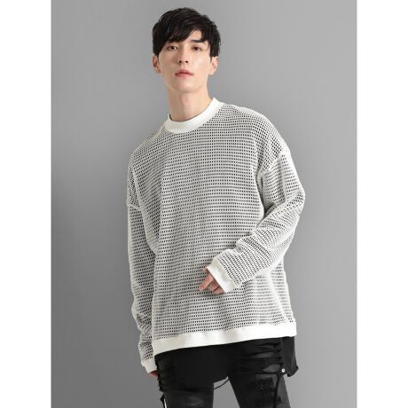 セマンティックデザイン メッシュ クルーネックBIGトレーナー