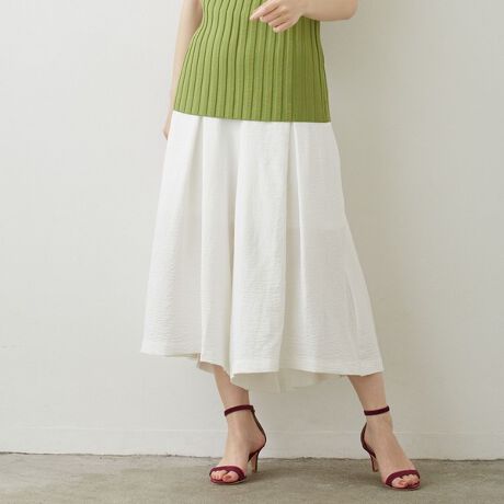 さらりとした質感と表情のあるリネンライクな生地は、ゆったりしたワイドサイズが涼しげな印象に。