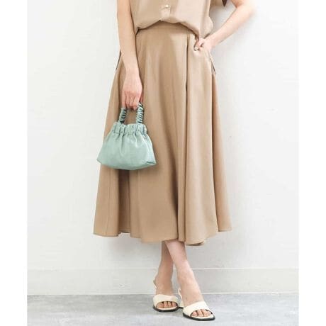 無地ながらも贅沢な分量感はシンプルなトップスと合わせるだけで決まるコーディネートの主役にぴったり。同素材のブラウスとセットアップでワンピース見えの着こなしもおすすめです。