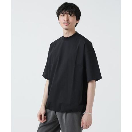 首に沿うようなモックネックに、ボリュームのあるシルエットが特徴のTシャツ。