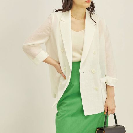 透け感とダブルブレストのマニッシュなバランスが、ベーシックながらとてもおしゃれな一品です。
