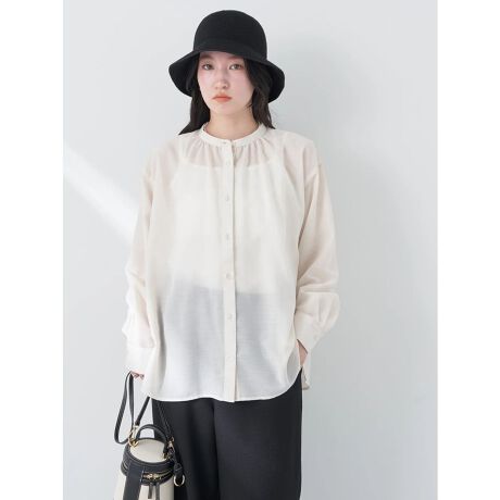 バンドカラーのネックデザインで、スタイリングに上品な印象をプラスします。
