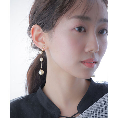 3連のパールが耳元で優雅に揺れます。