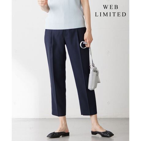 細みシルエットで着回しやすい、足首が出る丈感のテーパードパンツ。スッキリとした腰回りと、脚のラインを縦にキレイに見せてくれる1タックを入れたデザインです。後ろウエスト部分はゴム仕様で、履き心地を良くしています。同素材のジャケットとキレイめセットアップとしても、単体でトップスと合わせても履ける、着回し抜群のアイテム。裏地なしです。