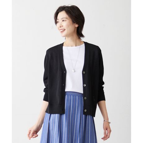 清涼感のある素材とシルエットが魅力!艶やかな貝釦のVネックカーディガン