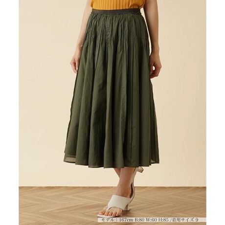 さらりとした薄手のコットン生地で仕立てた、シーズンらしい清涼感のあるミモレスカート。細やかなタック使いによりボリューム感のある美しいフレアシルエットでデザインしています。ウエスト周りにはグログランテープをあしらい、全体的にバランスよく引き締めました。シンプルなトップスとのスタイリングも程よくレディに仕上がる一枚。サイドファスナーで着脱もスムーズに行えます。------------------------------------初夏なしなしなし薄手ウォッシャブル(手洗い可)あり伸縮性なし-------------------------------------※商品の色味は、撮影場所や光のあたり具合、お客様のお使いの機器により色味が違って見える場合がございます。予めご了承ください。※定価(税込)は、2023年06月29日のセール開始前の店舗における販売価格です。