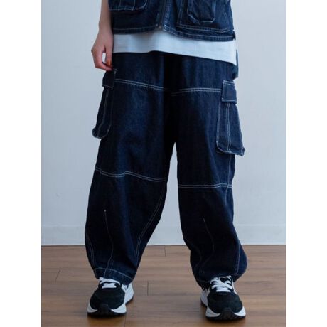 ボリューム感のあるユーティリティーカーゴパンツです。形違いで配した複数のポケットで収納力抜群。バックウエストゴム入りでリラックス感たっぷりに仕上げています。オーバーサイズのTシャツと合わせたストリート系から、ミリタリーシャツと合わせたアウトドア系まで。幅広いスタイルとコーディネートできる汎用性の高いアイテムです。