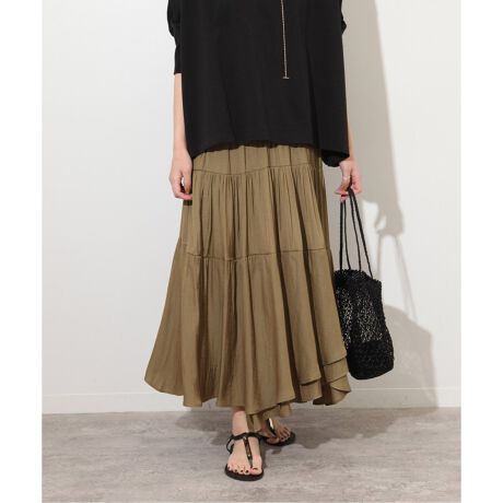 上品な光沢と柔らかで落ち感のある素材を使用したティアードスカート。