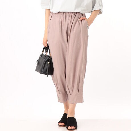 スラブ糸のナチュラルな表面感と、ソフトな風合いを併せ持つストレッチ素材のパンツ。裾にタックをとりふんわりとしたデザインに仕上げました。シンプルなトップスはもちろん、ワンピーとのスタイリングもおすすめの1枚です。