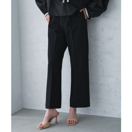 センタープレスとセミフレアシルエットがレッグラインを綺麗に見せてくれるイージーパンツ。
