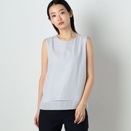 ON・OFFに使える上品なブライトシフォンのタンクトップを