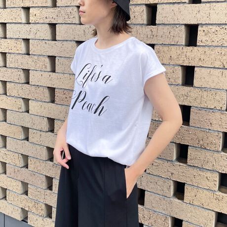 ビックプリントが目を惹く前後兼用で着られるロゴプリントTシャツ。