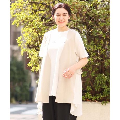 サイドがイレヘムデザインのジレはシンプルなTシャツに羽織ってスタイリングが決まる1枚。