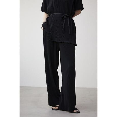 2023 Spring&Summer item ・ プリーツ素材を使用。 ・独特なハリ感と弾力性が特徴的な素材です。 ・ AZUL定番の夏素材で、薄いプリーツのカットソーが軽さもあり、風通しも良く快適に過ごせるアイテムです。 ・カットソーなので伸縮性もあり着心地も良く、表面は程よい光沢感があるので、カットソー見えせずフォーマルな場面でも活躍します。 ・ストレートシルエットなので、スタイルアップ効果もあります。 ・ウエストゴムなのでストレスフリーで着用していただけ、デザイン性、機能性を併せ持ったアイテムになります。 ・250GSB80-219D PLEATS DESIGN TOPSとセットアップで着用していただけます。