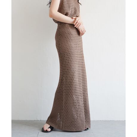 清涼感のあるクロシェがポイントのロングスカート。