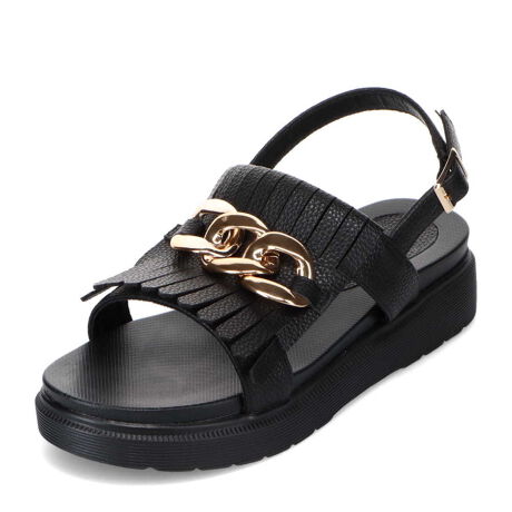 甲を覆うフリンジにエッジの効いたゴールドのチェーンが大人カジュアルコーデにピッタリ。