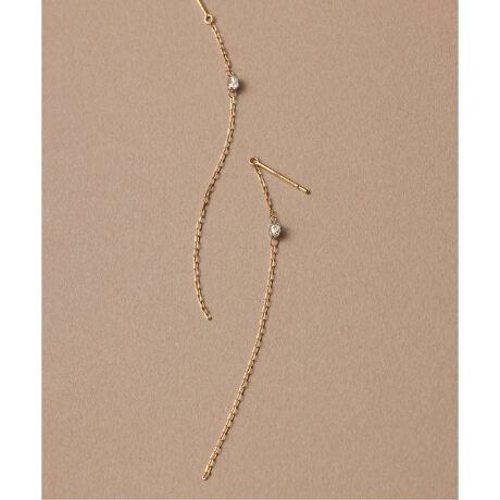 ダブルホールダイヤ5cmチェーンピアス0.18CT K18(両耳)