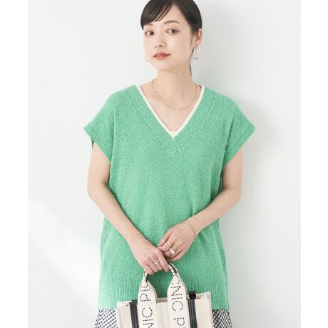 ざっくりとしたVネックが首元をすっきりとした印象にしてくれるベスト。