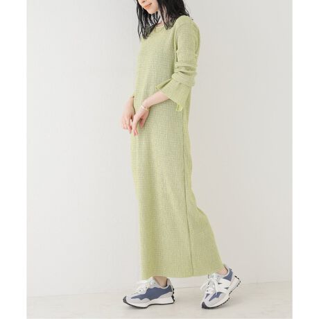 マルチボーダーのシャーリング素材を使ったワンピース。